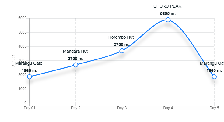 The minimum number of days required for this route is five, although the probability of successfully reaching the top in that time period is quite low. Spending an extra acclimatization day on the mountain is highly recommended when climbing Kilimanjaro using the Marangu route.